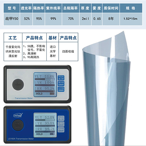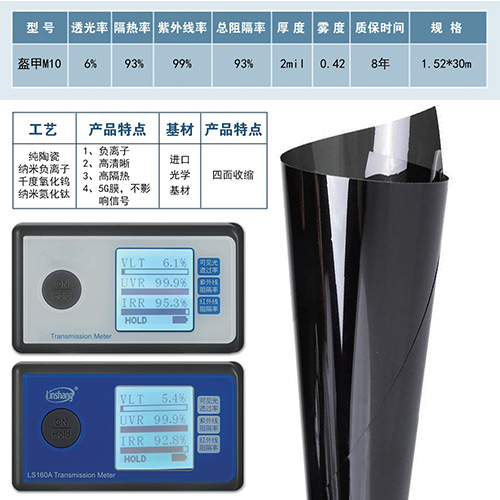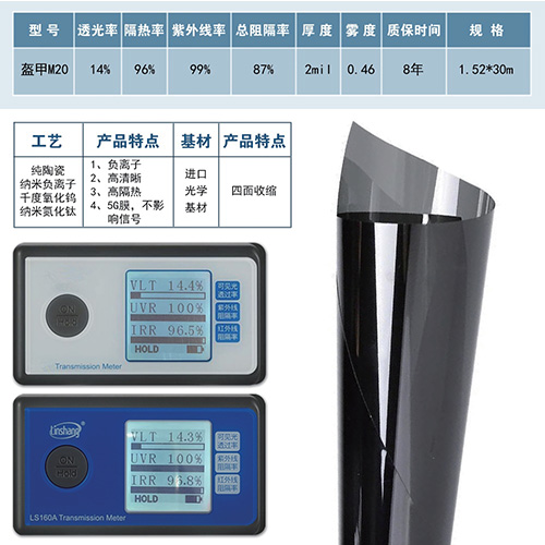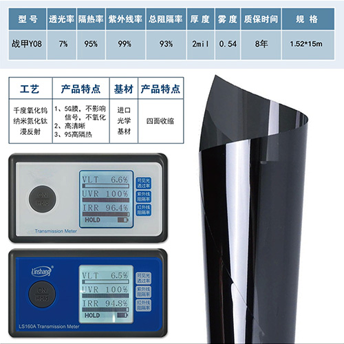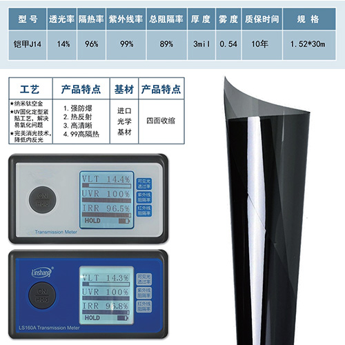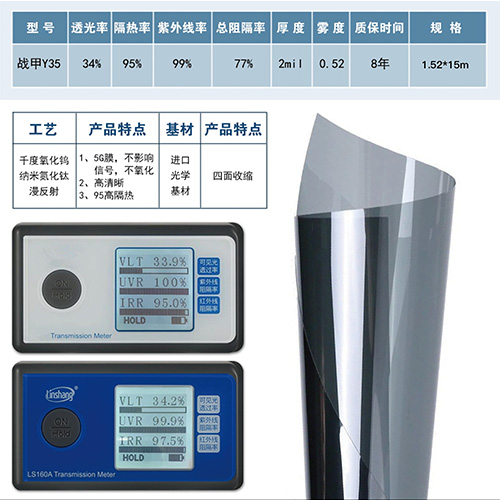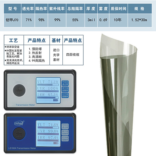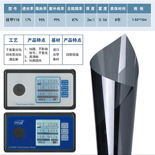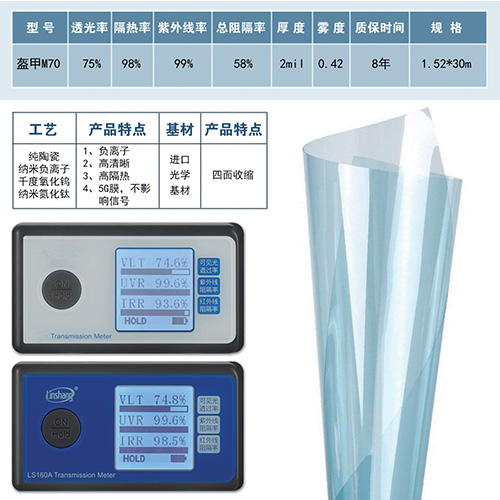 纳米涂镀工艺将纳米级的掺铯氧化钨和纳米氮化钛复合材料应用同时兼容均匀涂布在PET基膜表面,实现车膜长久高隔热效果,使用在中空贴玻璃上寿命超过25年。